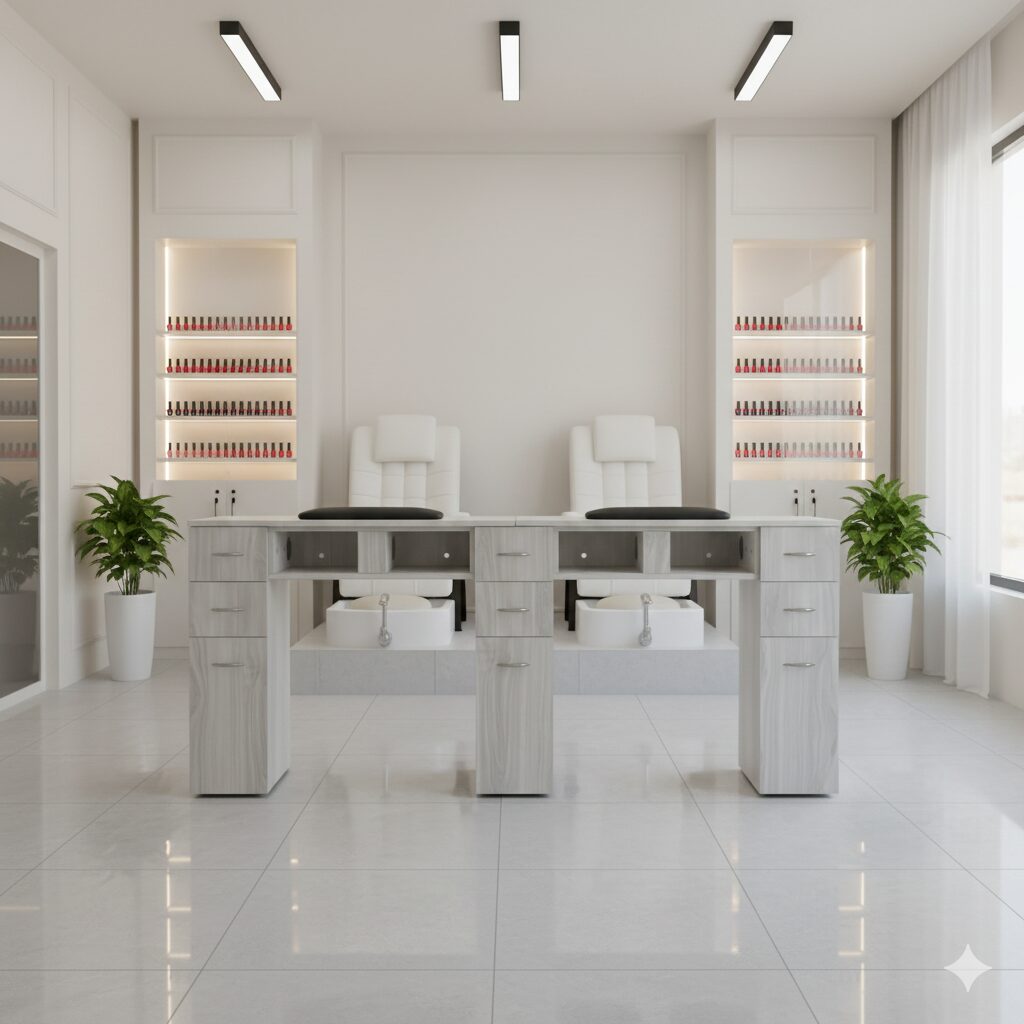 - Pre-drilled holes for nail table lights