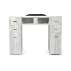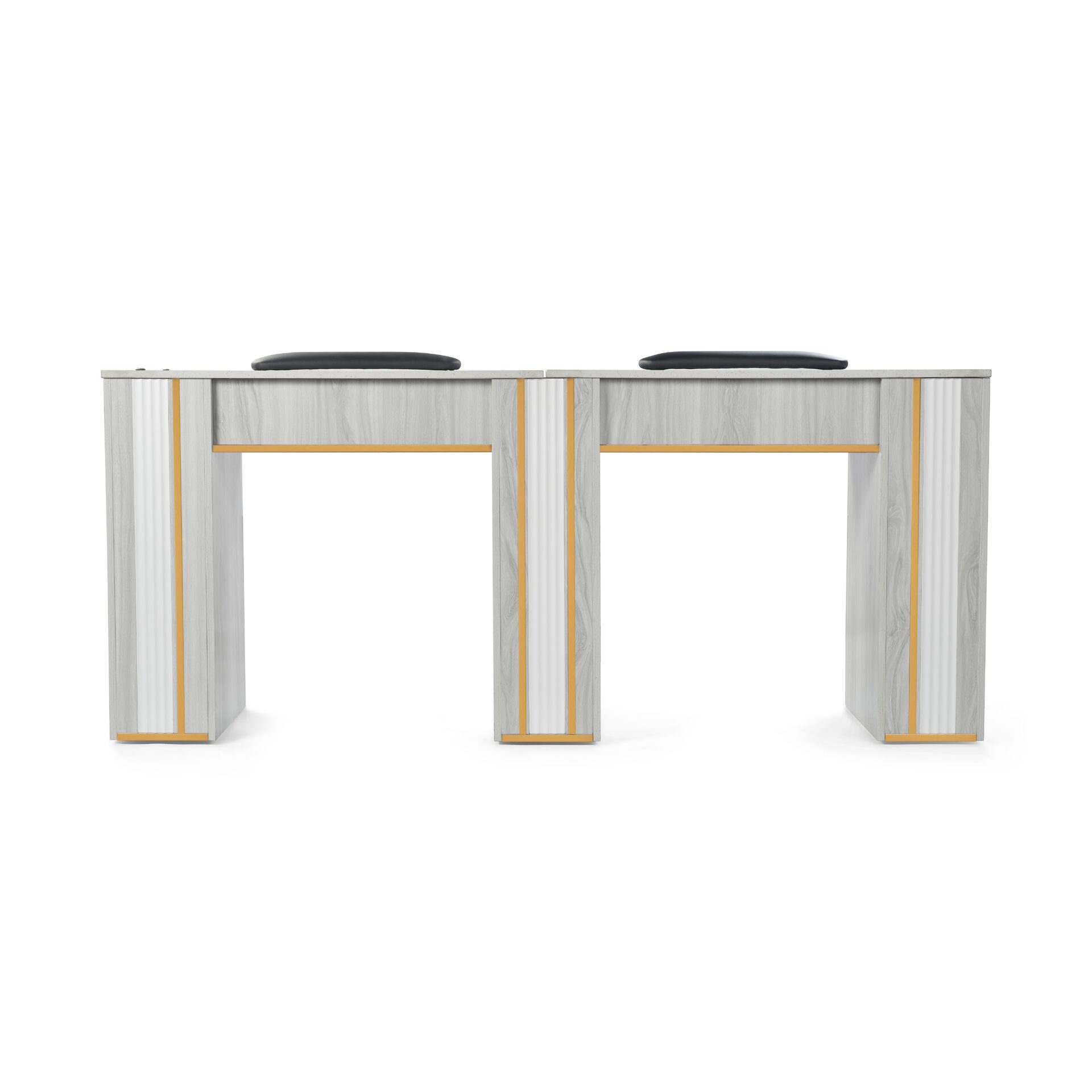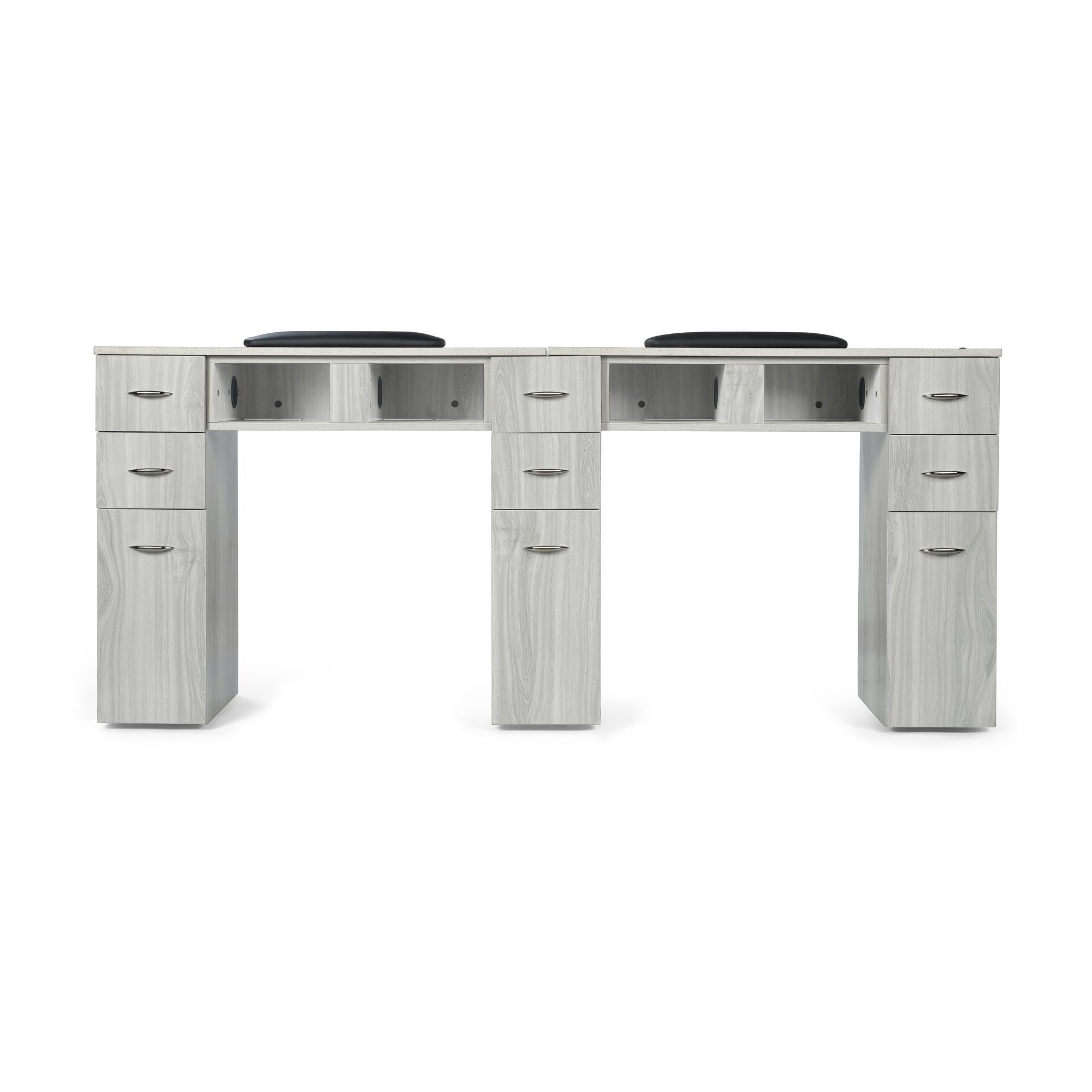 The sleek, modern design of the GrayGold Nail Double Table makes it the perfect workstation for the busy spa or salon. With a rich walnut finish and a white minimalist granite top, it’s a timeless look that will give your salon a sophisticated look and feel.