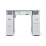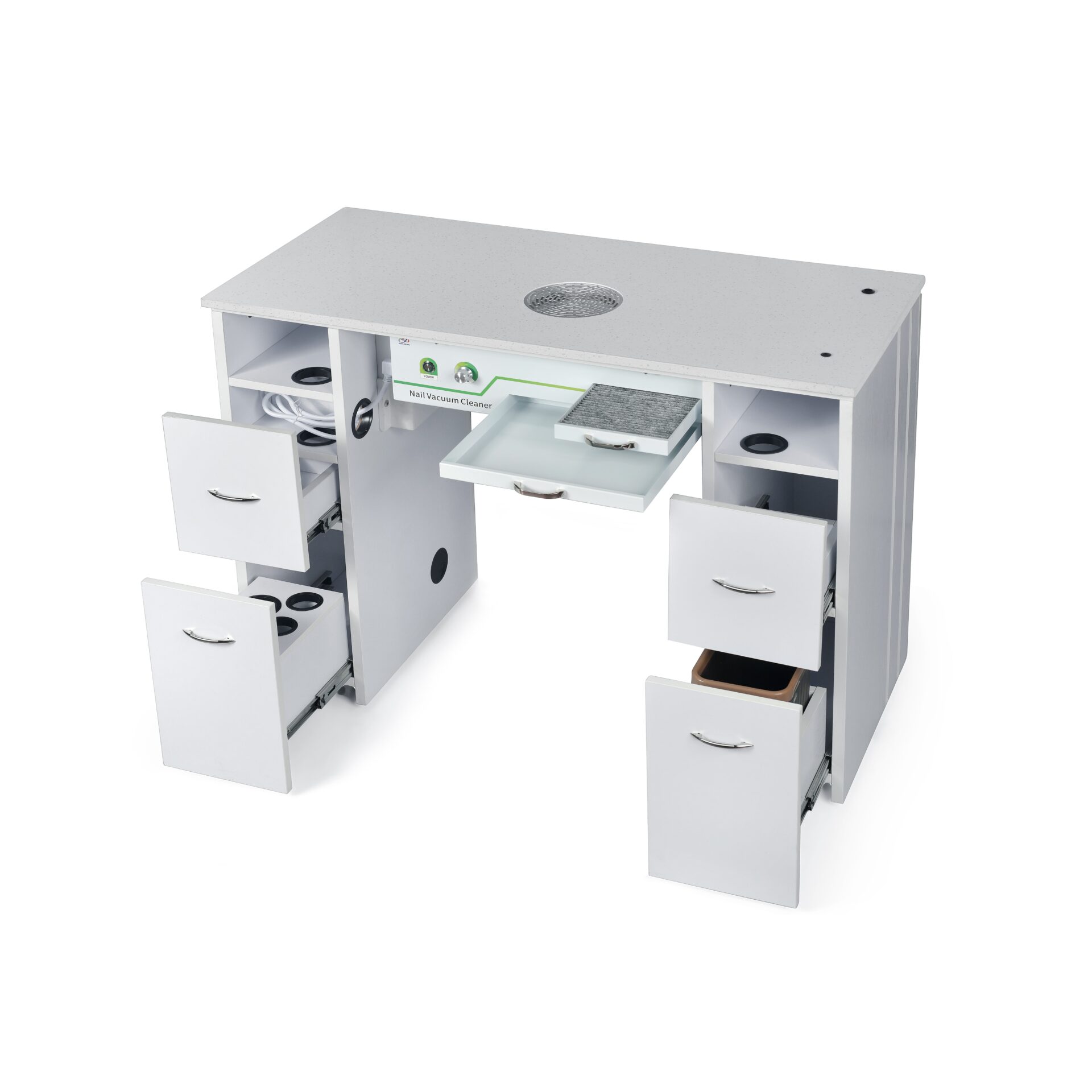 The sleek, modern design of the ProVac Nail Salon Table makes it the perfect workstation for the busy spa or salon. With a rich walnut finish and a white minimalist granite top, it’s a timeless look that will give your salon a sophisticated look and feel.